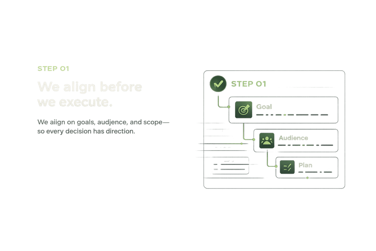 We align goals, audience, and execution before anything is built.